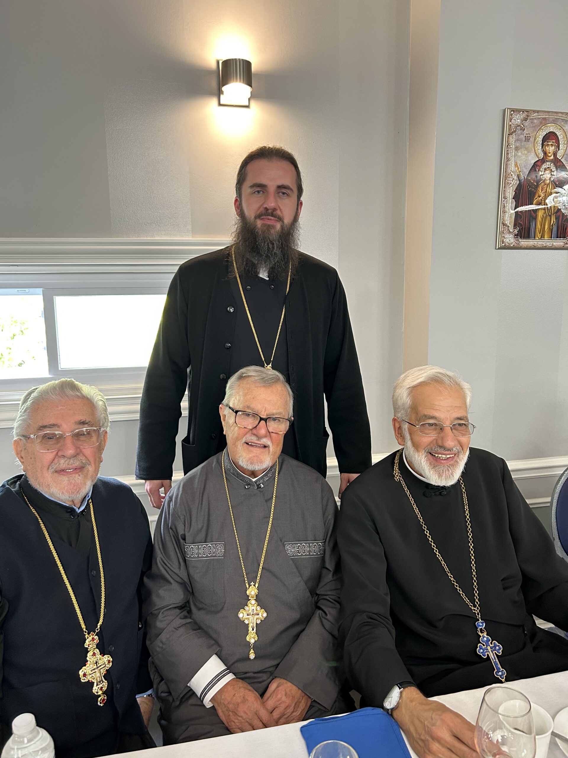 The Monastery Slava began with Hierarchical Divine Liturgy. His Grace Bishop Sava (Jurić), retired Bishop of Slavonia, presided, since the His Eminence Metropolitan Longin (Krčo) was in Belgrade, Serbia, for the consecration of Archimandrite Serafim (Baltic) as Bishop of Kostajnica, vicar of the Midwestern American Metropolitan. Concelebrating were the Nastojatelj of New Gračanica Monastery, the Rt. Rev. Archimandrite Sergije (Puškar), and many other clerics of the New Gračanica-Midwestern American Diocese, including V. Rev. Stavrofor Miloš Vesin, the Episcopal Deputy, who recently returned from Novi Sad, Serbia.