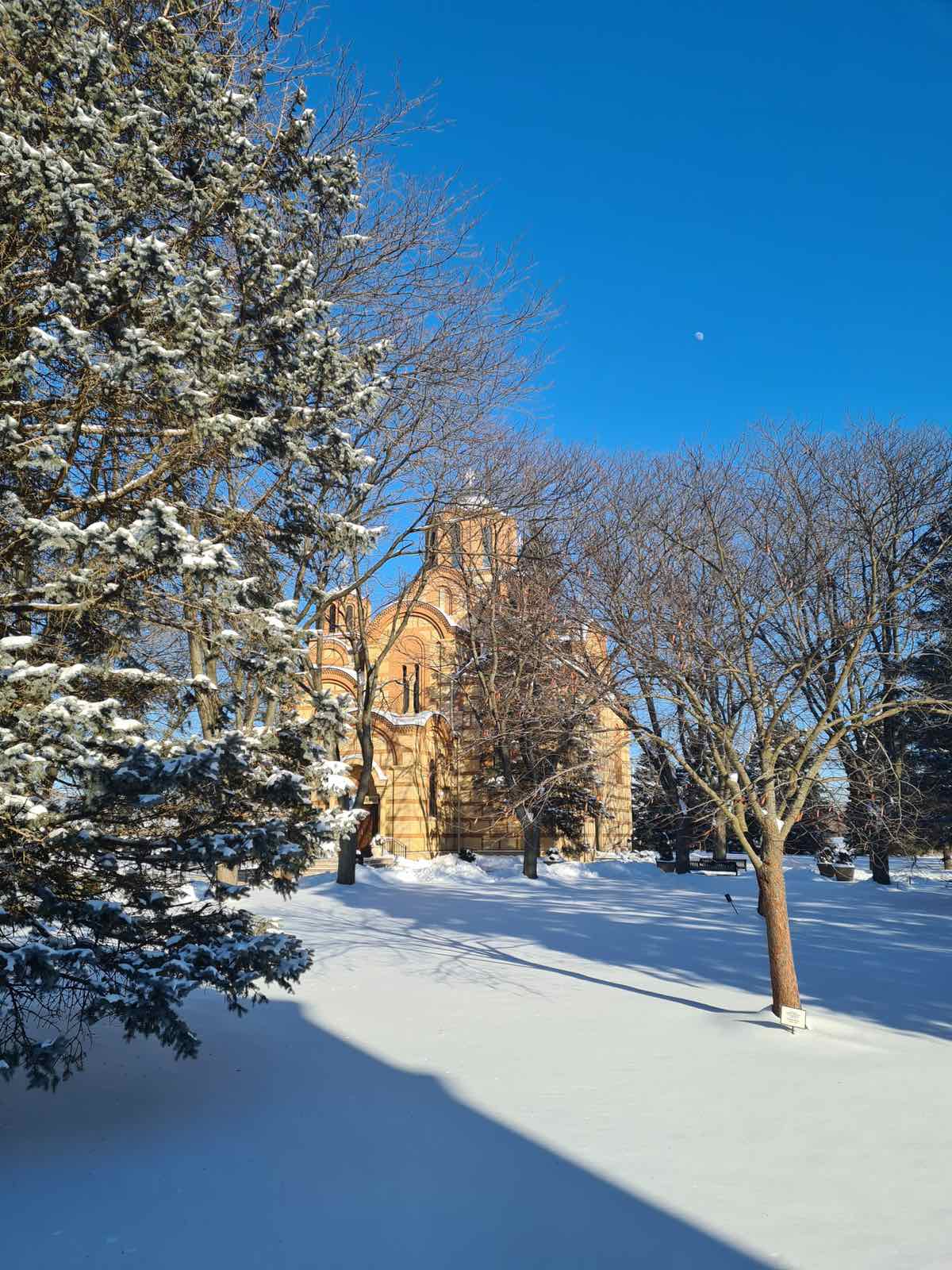 Његова Светост Патријарх српски г. Порфирије посетио је 30. јануара 2023. године, у пратњи преосвећене господе епископа новограчаничко-средњезападноамеричког Лонгина и канадскoг Митрофана, манастир Нову Грачаницу и Богословски факултет Светог Саве у Либертивилу.